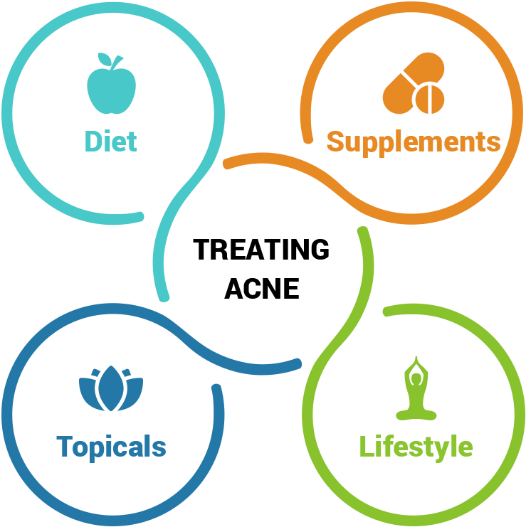 There are many supplements which can help address the underlying causes of acne such as: increased oil & skin cell production, high hormone levels, bacterial overgrowth and inflammation.